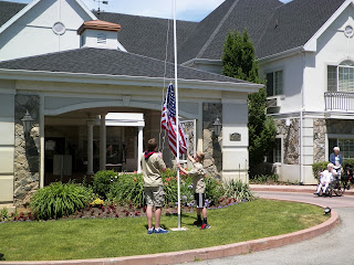 Today we celebrate Flag Day. Our residents have a deep love and respect for the American flag and they know the price that was paid for freedom as many of them or their loved ones served. We had a wonderful, simple ceremony to honor our flag. Two boyscouts came and carried out the raising of our flag outside of Barton Creek Assisted Living. Our residents paid tribute to our amazing country as we were lead in the Pledge of Allegiance and closing it by singing the National Anthem. Tender feelings were felt as well as sincere appreciation of what that flag means to each one of us. Happy Flag Day!!!!